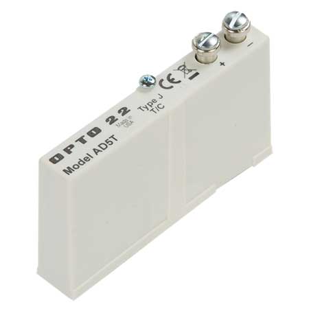 The AD5T Type J thermocouple analog input module provides a single channel of optically isolated temperature-to-digital conversion.